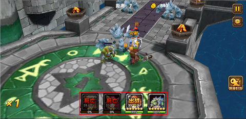 远征之路成直线型,长度按米计算,每跑1米就有相应的金币奖励,玩家可带领英雄勇往直前。