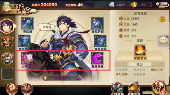 在阵容界面,点击角色装备栏任意宝物,都可进入宝物培养系统。