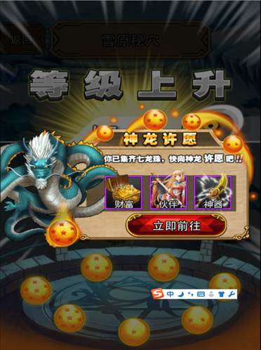 在游戏中,角色每升1级便能收集到1颗龙珠,当收集到7颗龙珠时,便可实一个愿望。