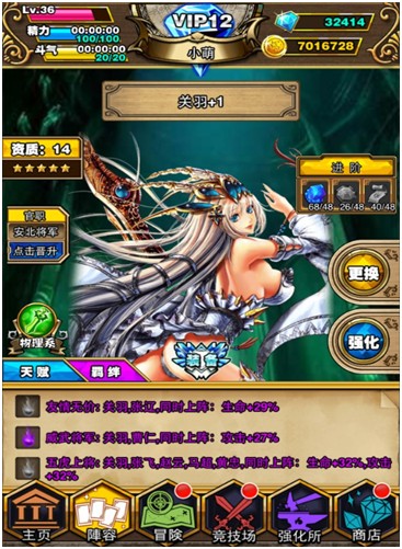 和所有游戏一样,《啪啪女神》的武将变强也离不开武将升级、装备强化、技能强化,但是除了这些通俗的套路,还有没有其他办法能使我们突破瓶颈,得到进一步的提升呢?有,大大的有,
