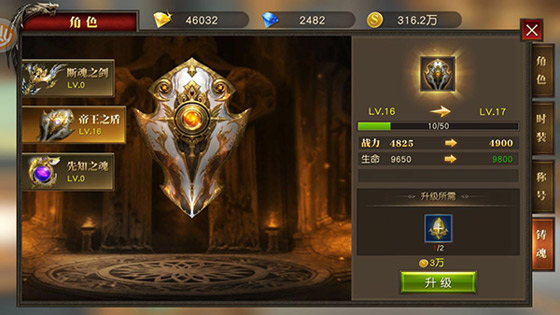 铸魂一共有剑,盾,魂3个类别,分别对应攻击、生命、会心一击3种属性。