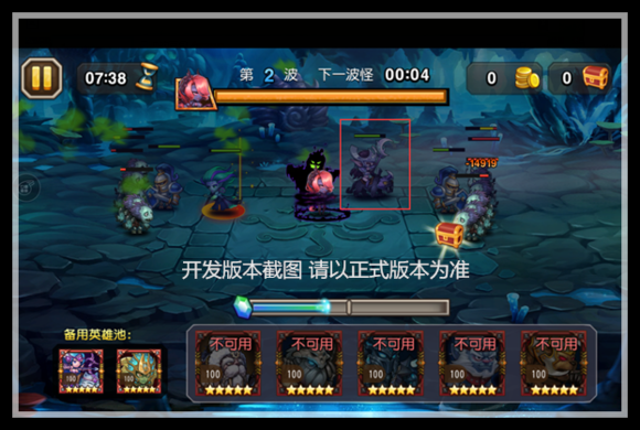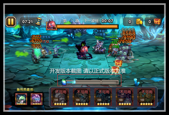 待达到指定能量值时,右边的英雄池亮起,点击某一英雄头像,战场中会出现一片绿色区域,队长大大们可以按照当前怪物侵袭的状况来选择将该英雄安排在绿色区域内的某一位置。