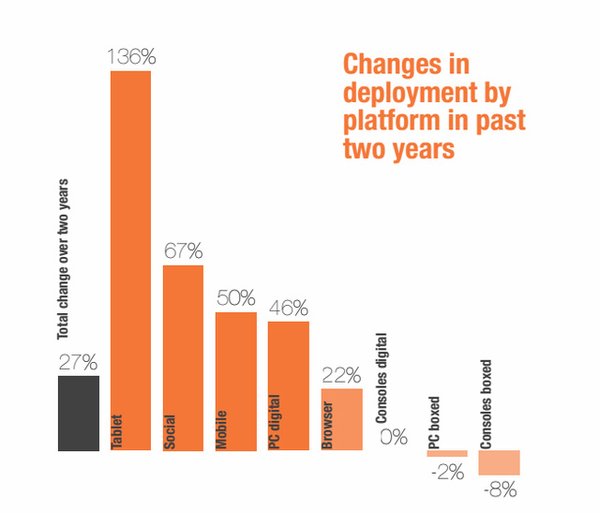 随着移动通信的出现,开发商比以前有了更多的平台。在过去两年中,参与调查的活跃平台数量增长了27%。从上图可以看到关于平台的更多信息,以及这些平台是如何发展的。