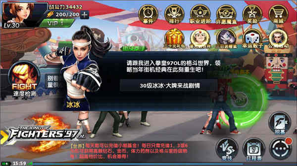 30级之后,《拳皇97OL》的难度明显上了一个台阶,格斗家们必须全神贯注才有可能在任务中获得三星评定。如果你发现刷副本有点困难,主线任务做起来吃力,是时候做点什么来提升自己了。储存精力和时间,优先完成支线任务和日常活动,之后再去活动广场刷刷经验副本。如果还有余力可以去竞技场小试牛刀,有经验可拿,还能提升自己的操作水平。毕竟《拳皇97OL》是一款格斗手游,PVP才是格斗的精髓。