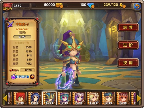 角色的养成也非常丰富,不单有等级,还有技能和星级的。所有角色都带有3个以上的技能,提升需要消耗材料和金币,在酷酷中金币可是非常实用的,所以各位玩家要记得要用在刀刃上,在强化技能时一定选择最实用的来进行强化哦!