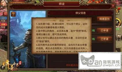 3、拜师流程:其实,勇士们只需要在界面上找到师徒系统,很容易找到符合条件的师父或徒弟。