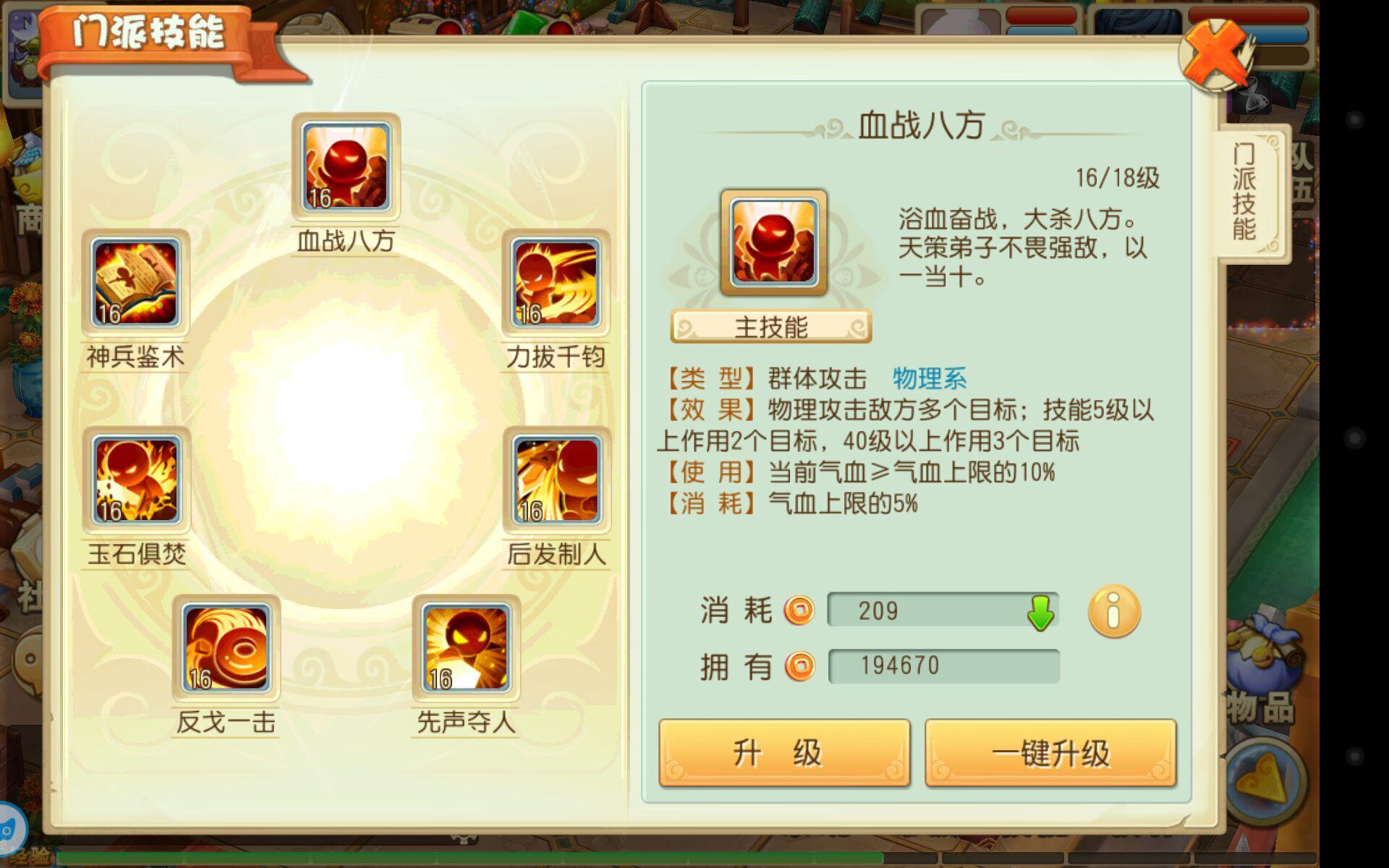 小编点评:练级必备技能,伤害不低,消耗少量气血,而且基础技能不点你也点不了其他的~