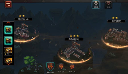 玩家可以看到中间三个被火焰环绕的就是“冒险”的具体内容啦。至于下面的三个按钮,代表了玩家经历的三段冒险旅程。当然,除了这三段旅程之外,还有更加传奇的冒险等着各位玩家哦~