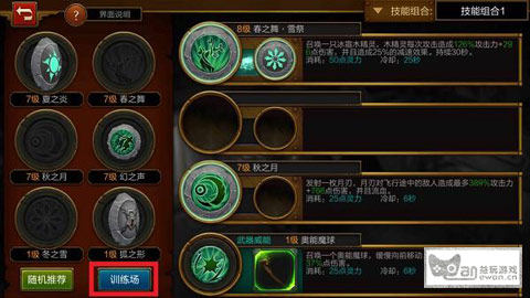 首先介绍一下训练场入口~小伙伴们只要打开技能界面,就能看到左下角的训练场,点击后即可进入。