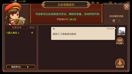 公会语音派对可以说是日常中获取额外的公会贡献的地方。公会语音派对是从7:30开始到21:00结束,其中是需要会长或者官员才有权限来打开这个系统的。所以各位会长大人与官员得和全公会的人约定好什么时候开放哦。不然随机的开放时间公会有人会不悦的。虽然只有短短的十道题目。但是奖励绝对是不容错过的。