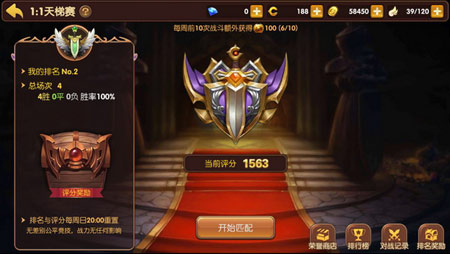 在天梯赛中,每次战斗后都可以获得相应的评分,评分初始为1500分,当评分达到某个阶段时,就可以领取相应的奖励,评分是每周一20:00点重置。