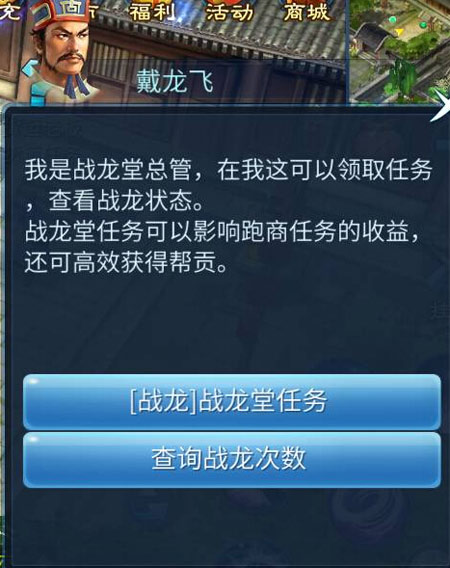 领取任务后,点击戴龙飞,选择进入战龙帮会进入目标帮会。注意,进入目标帮会后灰名。