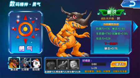 不同于其它游戏,出手顺序纯靠战斗力高低,在数码宝贝大冒险中,先手值由数码精神决定,集齐指定数码兽组合可获得先手值的提高。