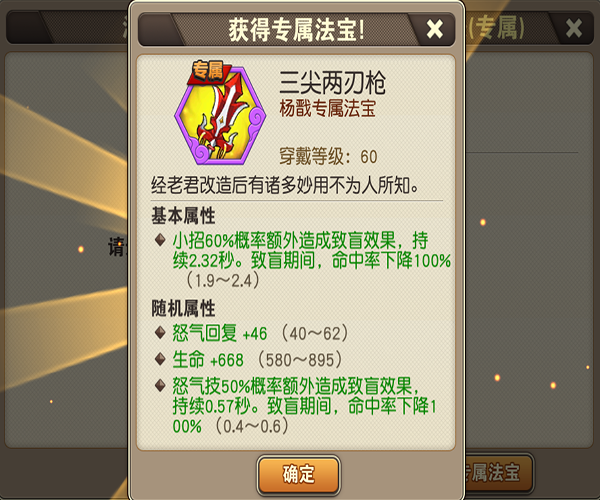 法宝是一件特殊的装备,可给神将提供额外的属性加成。