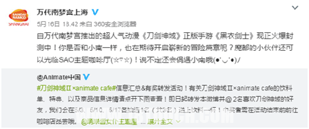 作为IP版权方的知名游戏大厂万代南梦宫对这款游戏也是十足的重视,据悉,为庆祝《刀剑神域黑衣剑士》即将正式上线,万代南梦宫游戏制作人将为手游《刀剑神域黑衣剑士》录制祝福视频,向中国的玩家们问好。