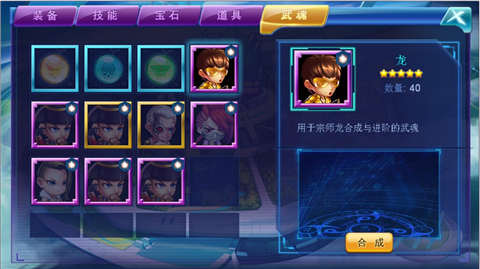 关于宗师的武魂收集也是需要精心筹备的。尚未拥有的宗师误会一般可以通过武魂圣殿的缘分召唤而获取,当我们不断的努力,终于收集到足够的宗师武魂时,就可以通过包裹里的武魂页面合成宗师了,合成后就可以获得该宗师,如40个龙的武魂合成后就会拥有一个完完整整的龙哦(如下图)!